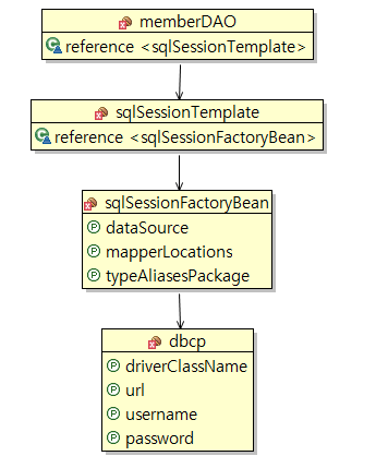 <bean id="memberDAO" class="org.kosta.model.dao.MemberDAOImpl">