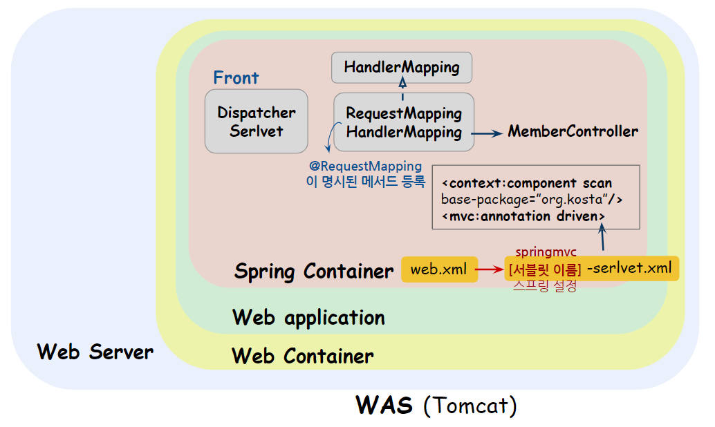 <!-- DispatcherSerlvet은 자신의 설정 파일(springMVC 설정)을